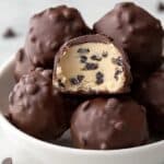 Keywords: no bake cookie dough bites, edible cookie dough, chocolate coated cookie bites, easy dessert, no bake treats