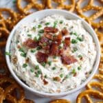 This OMG Pretzel Dip is a creamy, cheesy, and tangy dip perfect for pairing with pretzels. Combining sharp cheddar, whipped cream cheese, ranch seasoning, Dijon mustard, sour cream, and fresh green onions, this versatile dip can be served chilled or warm, making it an excellent choice for parties or casual snacking.