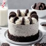 Store the Oreo Cake covered in the refrigerator for up to 4 days. Let it come to room temperature before serving for best texture. Leftover cake slices can also be wrapped tightly and frozen for up to 2 months; thaw overnight in the fridge and bring to room temperature before eating.