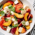 Keywords: Peach Caprese, Peach salad, Caprese salad, Fresh mozzarella salad, Summer salad, Italian salad, No-cook recipe