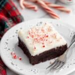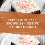 Keywords: Peppermint bark brownies, peppermint brownies, chocolate peppermint dessert, holiday brownies, peppermint white chocolate frosting, festive brownies