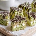 These Pistachio Rice Krispie Treats are a delightful twist on the classic snack, adding a subtle nutty flavor with instant pistachio pudding. Topped with a drizzle of dark chocolate, they’re a perfect sweet treat for any occasion.