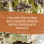 Keywords: pistachio, rice krispie treats, marshmallow treats, pistachio pudding, chocolate drizzle, easy dessert, no-bake snack
