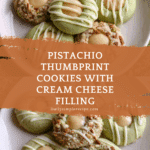 Pistachio Thumbprint Cookies with Cream Cheese Filling and White Chocolate Drizzle Recipe