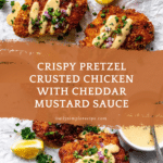 Keywords: Pretzel crusted chicken, fried chicken, cheddar mustard sauce, crispy chicken, comfort food