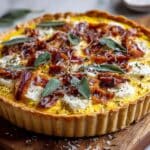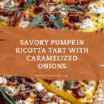 This Pumpkin, Ricotta & Caramelized Onion Tart combines the rich creaminess of ricotta and pumpkin purée with sweet caramelized onions, crispy bacon, and fresh sage on a flaky puff pastry crust. This savory tart is perfect for a cozy meal or elegant appetizer, bringing autumn flavors to your table with a balance of textures and flavors.
