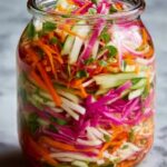 A quick and vibrant fridge pickled vegetable recipe that blends shredded carrots, radish, cucumber, and red onion in a tangy homemade brine. Perfect as a crunchy, flavorful addition to sandwiches, salads, or as a refreshing side dish.