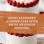 Keywords: raspberry almond cake, almond cake, raspberry filling, Swiss meringue buttercream, layered cake, homemade frosting