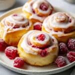 Keywords: Raspberry Cinnamon Rolls, Cinnamon Rolls, Raspberry Filling, Lemon Glaze, Breakfast Pastry, Homemade Rolls