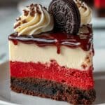This indulgent Red Velvet Oreo Cheesecake combines the rich, creamy texture of classic cheesecake with the deep cocoa flavor of red velvet and the crunch of Oreo cookies. Featuring a buttery Oreo crust, layered red velvet and vanilla cheesecake batters, and topped with a silky chocolate ganache and whipped cream, this dessert is perfect for special occasions or a decadent treat.
