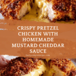 Savory Pretzel Chicken with Mustard-Cheddar Sauce Delight features juicy, tender chicken breasts coated in a crispy, crunchy pretzel crust baked to golden perfection. Paired with a creamy, tangy mustard-cheddar sauce, this dish offers a delicious balance of savory flavors and textures perfect for a satisfying dinner.