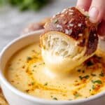 - Season and Serve: Taste the dip and add salt and pepper as needed. Garnish with additional cayenne or smoked paprika and chopped parsley if desired. Serve the warm beer cheese dip alongside the freshly baked soft pretzels.