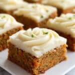 Keywords: carrot bars, zucchini bars, ginger dessert, cream cheese frosting, spiced bars, healthy dessert