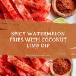 Keywords: spicy watermelon fries, chili lime seasoning, coconut lime sauce, watermelon appetizer, summer snack, fruit fries, dairy dipping sauce