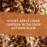 Keywords: apple cider chicken, sticky chicken, autumn recipe, chicken thighs, crisp slaw, fall flavors, healthy chicken recipe, easy dinner