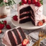 PrintStrawberry Chocolate Cake with Cream Cheese Frosting and Fresh Strawberry Garnish Recipe