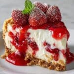 This Strawberry Crunch Cheesecake is a delightful no-bake dessert combining a buttery graham cracker crust with a light and airy cream cheese filling, topped with fresh strawberries coated in sweet strawberry jam and an optional crunchy topping. Perfectly chilled, it offers a refreshing and luscious treat that’s easy to prepare and sure to impress.