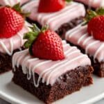Keywords: brownies, strawberry frosting, heart-shaped, chocolate dessert, Valentine’s Day treats, homemade brownies, chocolate strawberry dessert