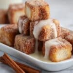 - Step 4: Add an Optional Sweet Drizzle. Mix powdered sugar with milk to create a glaze. Drizzle over the cinnamon sugar-coated bites and let set slightly before serving.