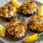 Deliciously savory crab-stuffed Portobello mushrooms featuring a creamy, flavorful mixture of lump crab meat, herbs, and cheeses, perfectly cooked on the grill or baked to golden perfection. A perfect appetizer or main dish that combines the earthy taste of mushrooms with a rich seafood filling.