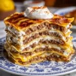 This Ultimate Breakfast Lasagna is a delicious layered dish combining fluffy pancake batter, savory breakfast sausage, melty cheese, and a sweet drizzle of maple syrup. Perfect as a hearty morning meal, it brings the comforting flavors of breakfast favorites together in a baked casserole form.