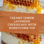 Keywords: lemon cheesecake, lavender cheesecake, honeycomb topping, creamy cheesecake, baked cheesecake, floral dessert