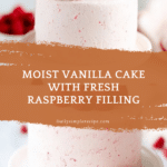 Keywords: vanilla cake, raspberry filling, layered cake, buttercream frosting, homemade cake, dessert recipe, vanilla buttercream, berry compote