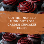Wednesday Morticia’s Midnight Rose Garden Cupcakes Delight are decadent chocolate cupcakes with a gothic twist, featuring a moist cocoa-infused batter, rich chocolate frosting, and adorned with edible glitter and fresh or sugar roses for an enchanting presentation perfect for themed parties or elegant dessert tables.